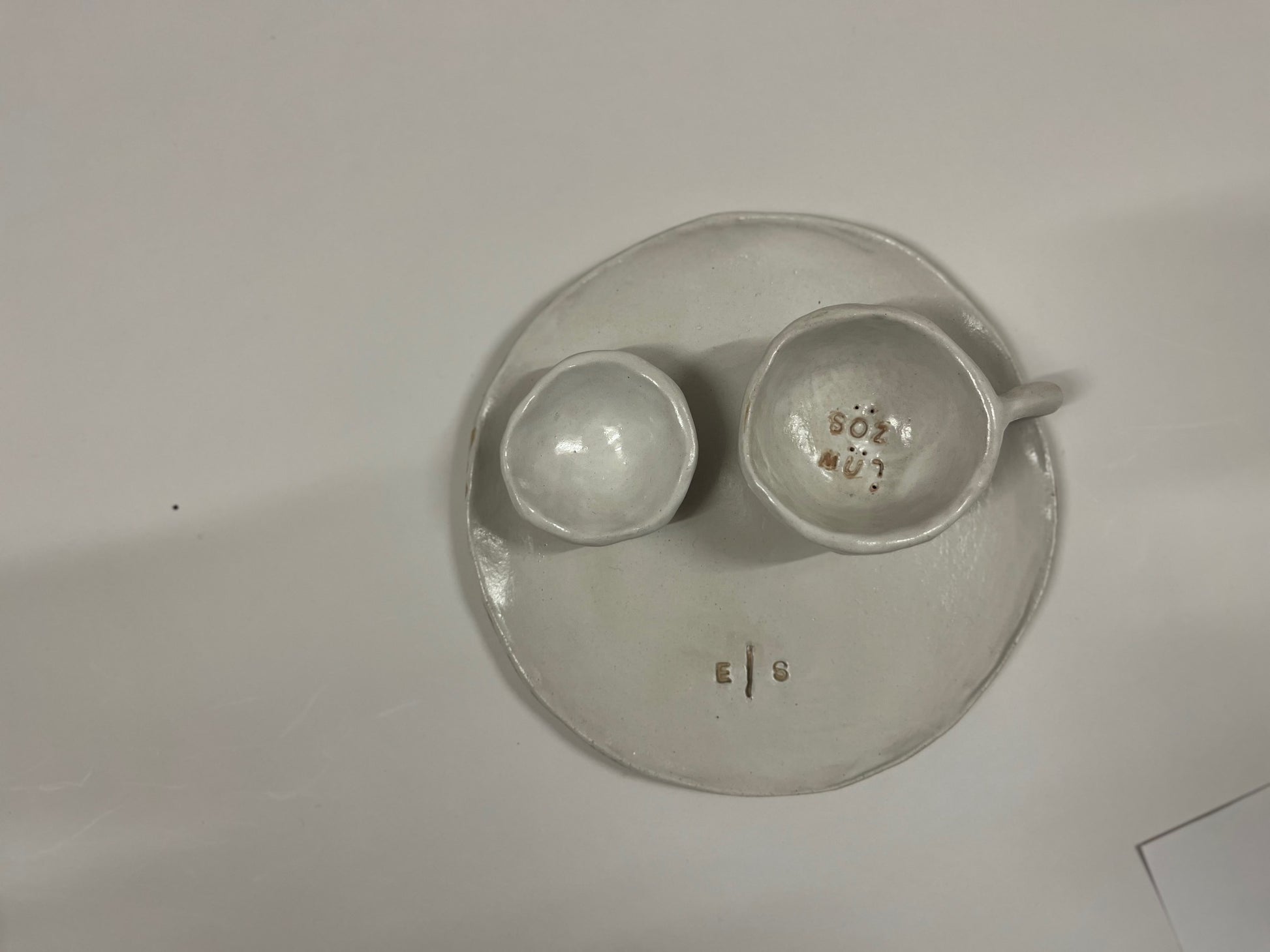 Materiaal: Steengoed klei, onder glazuur kleuren, wit glazuur.