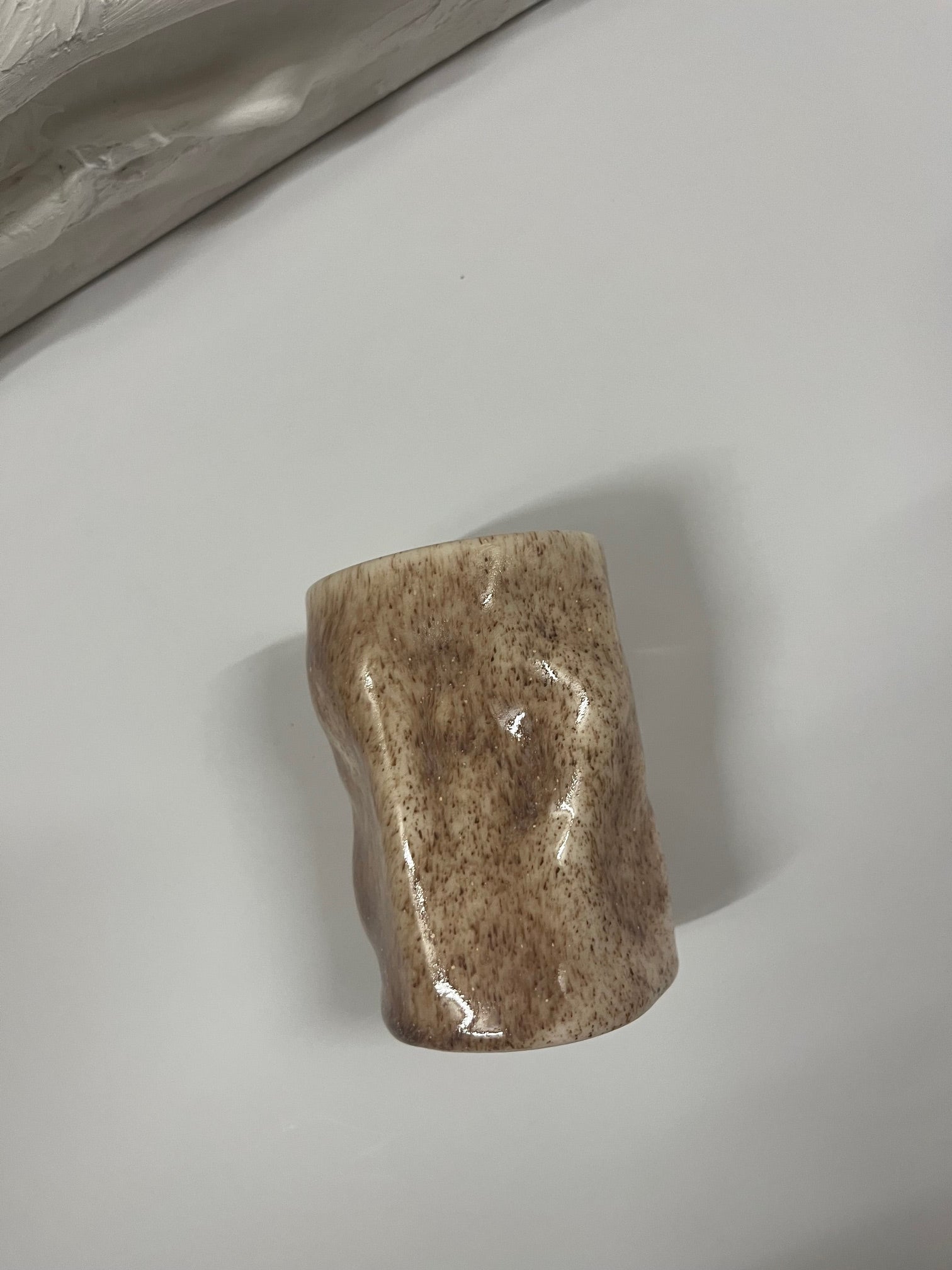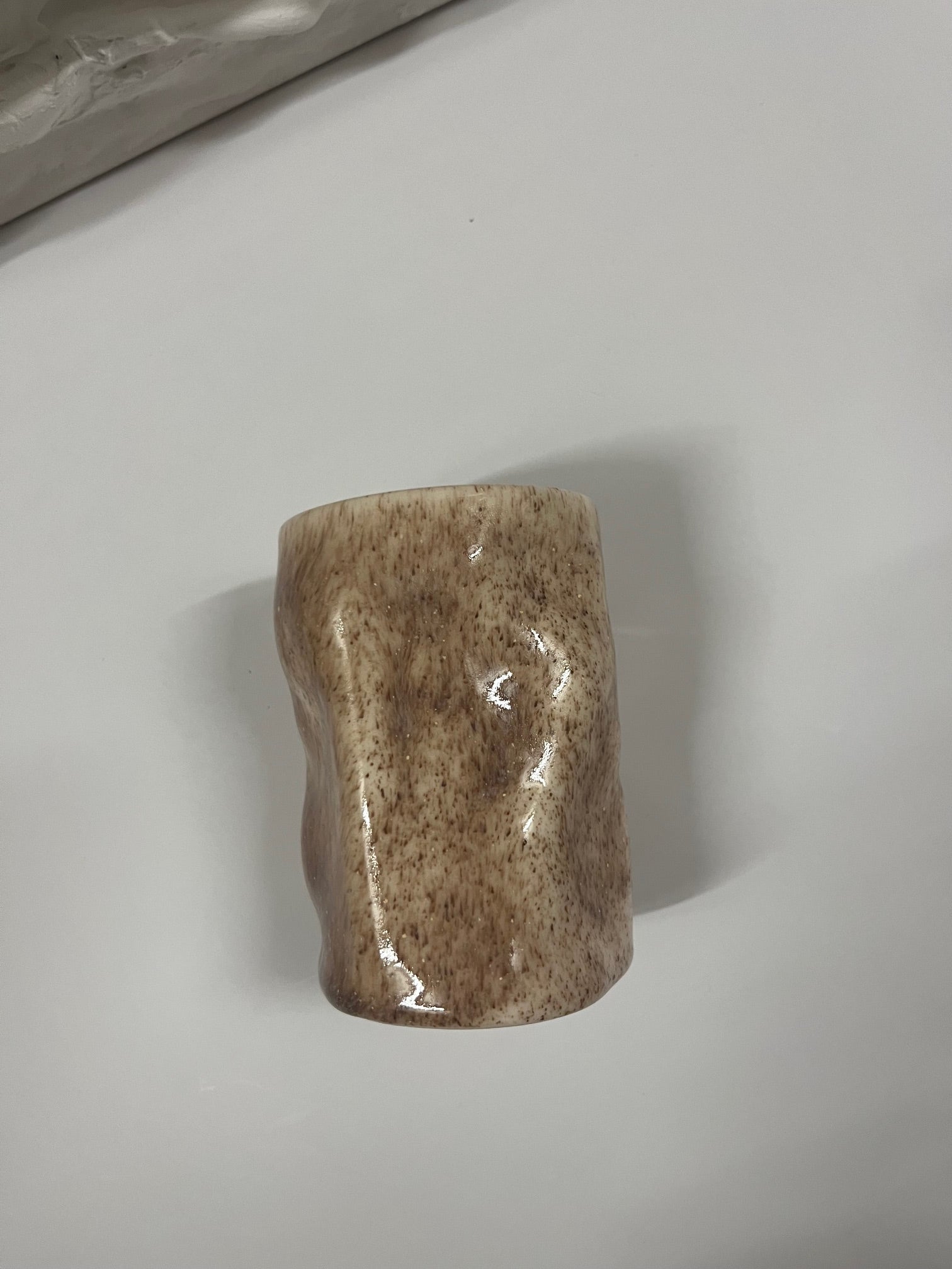 Materiaal: aardewerk klei en gespikkelde glazuur.