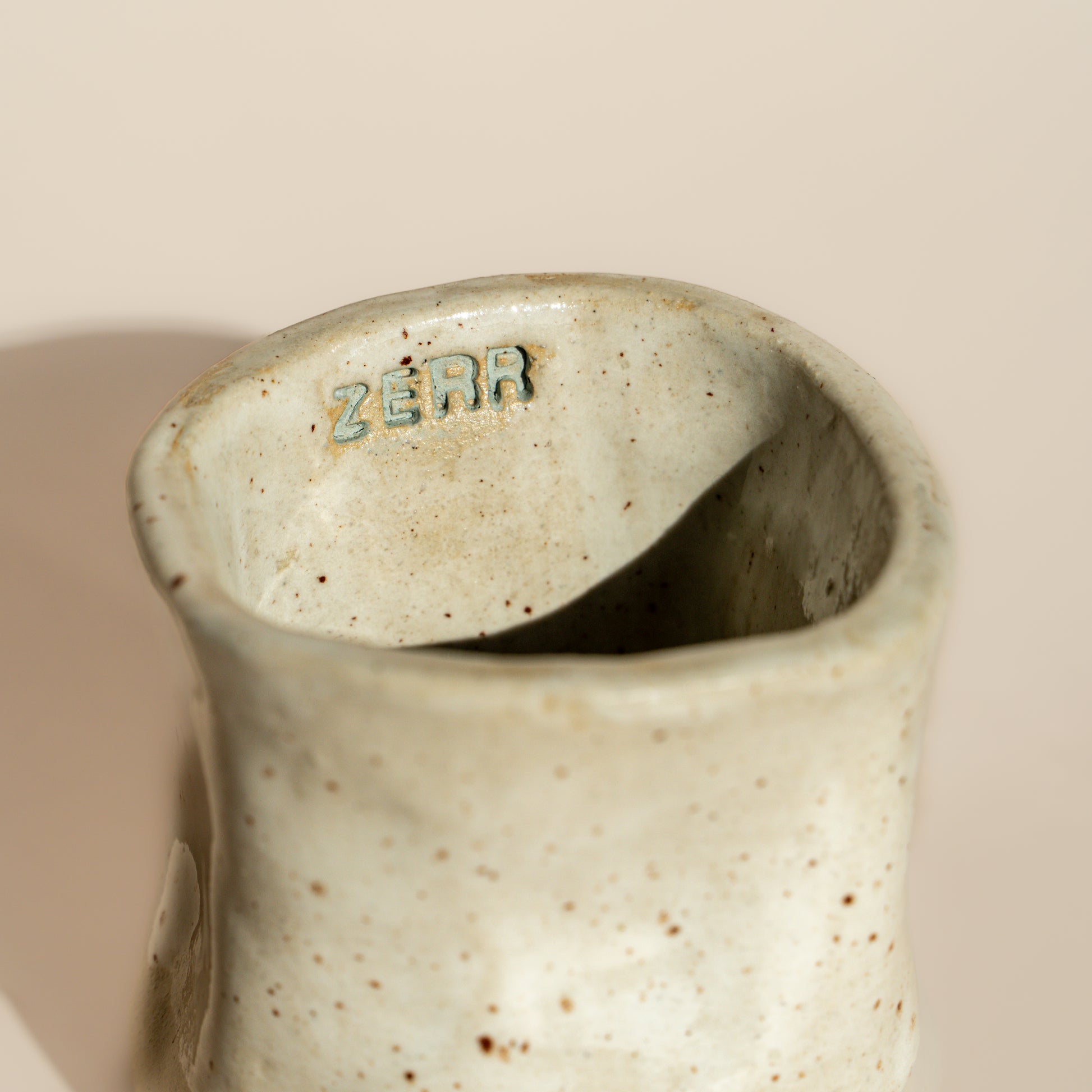 Materiaal: Steengoed klei, onder glazuur kleuren, gespikkelde glazuur